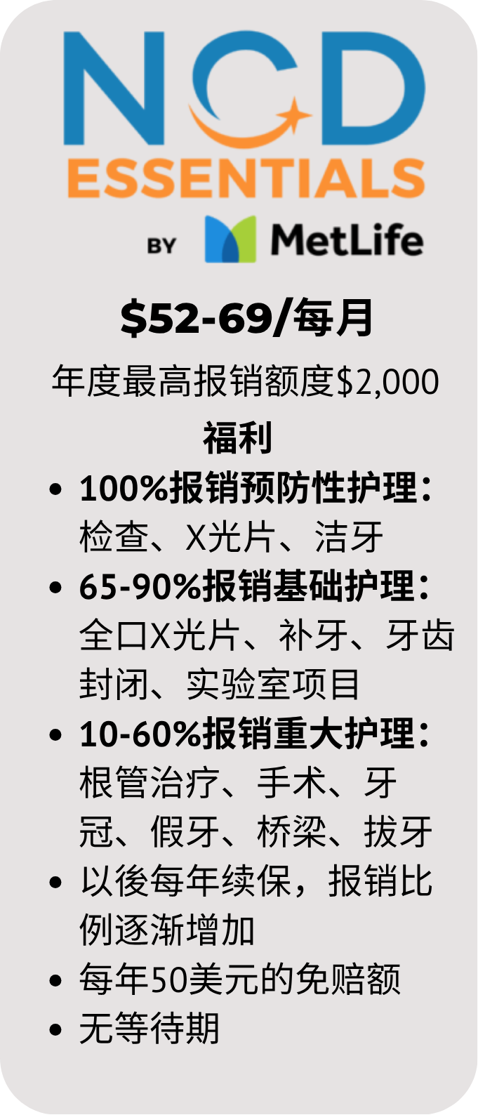 NCD Smile by MetLife 计划